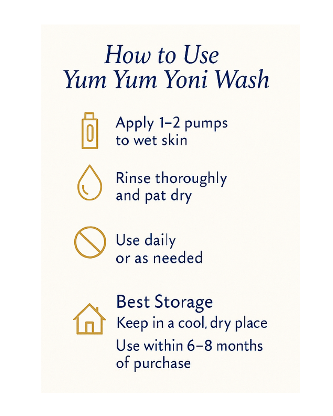 Gentle, refreshing, and designed with love Yum Yum Yoni supports your most intimate areas with a luxurious cleansing experience. Ideal for daily use, it’s made with care to respect Treat yourself to the softness you deserve.
